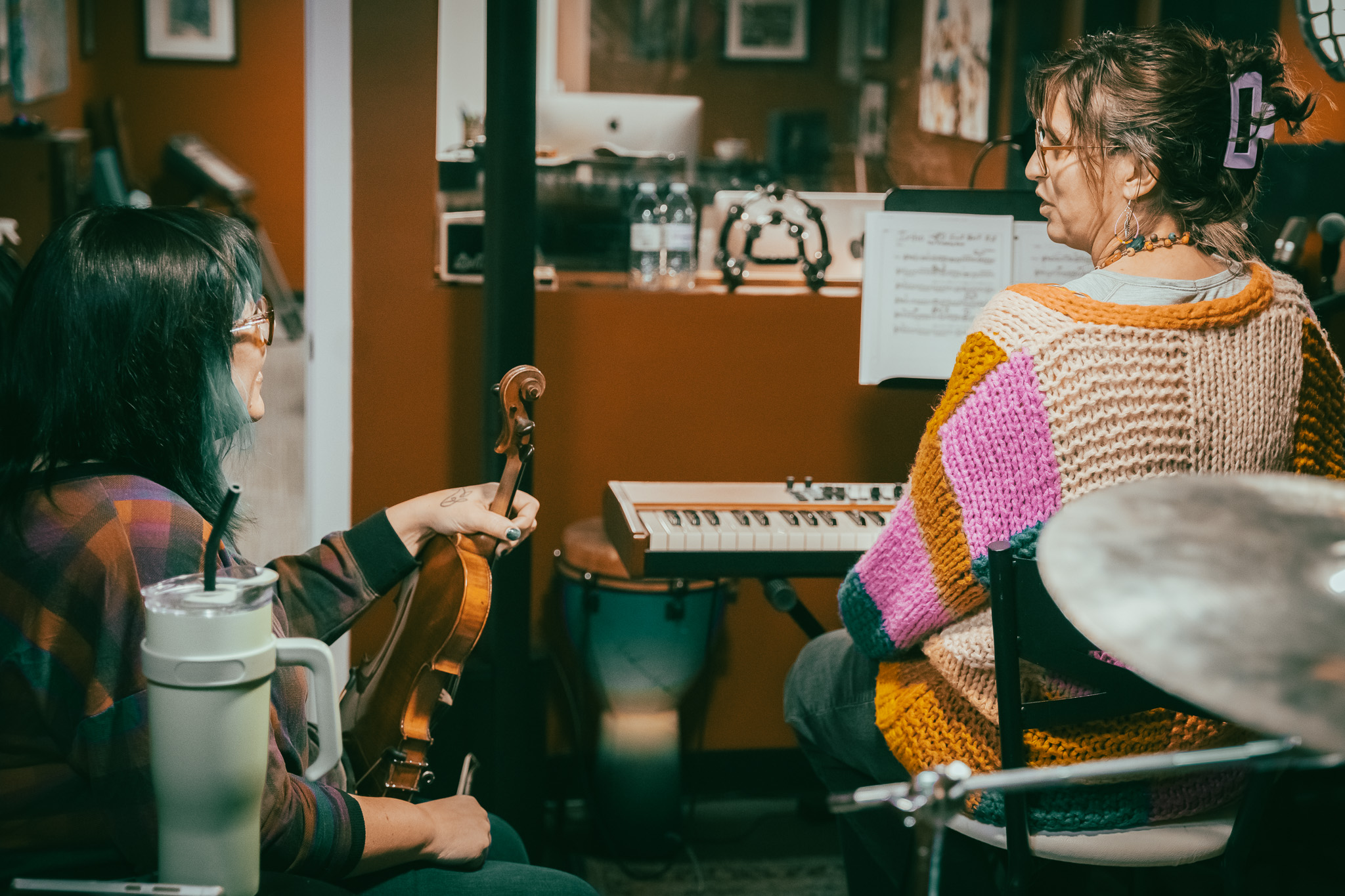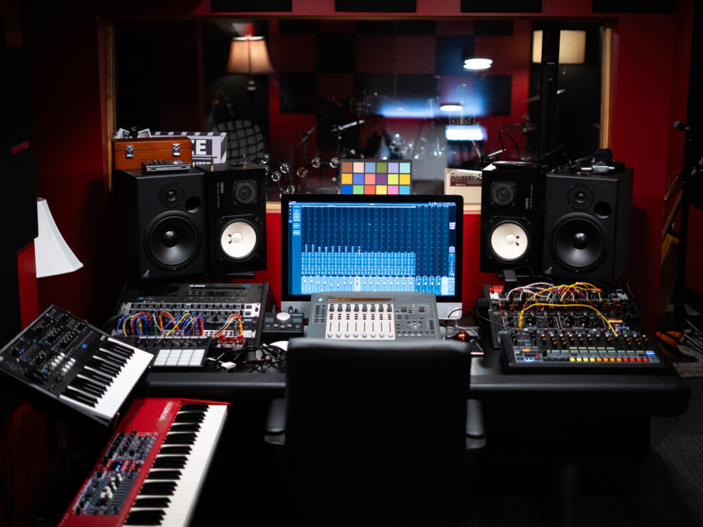 Artists have access to a curated selection of professional instruments, including an original Roland Juno-60, an original Rhodes electric piano, Korg SV-1, Nord Electro 6D, Korg Wavestate, and Maschine Plus. A full drum kit is also available, and the studio can easily accommodate drummers who prefer to bring and record with their own kit.